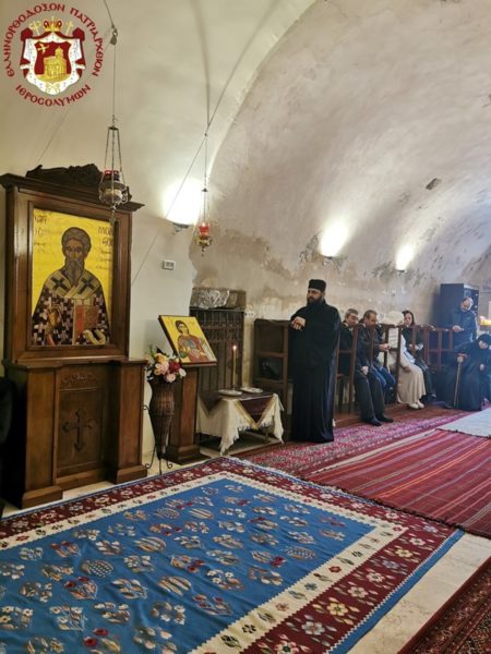 خلال القداس الالهي حضر غبطة البطريرك ثيوفيلوس الثالث للدير للتبارك, وبعد القداس الالهي أعدّ مشرف الدير المتوحد الراهب انديوخوس ضيافة في ساحة الدير.