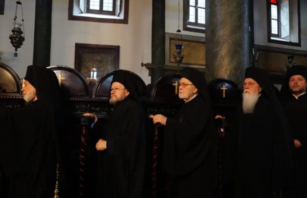 بحضور اصحاب السيادة متروبوليت فيلادلفيا المطران ميليتو متروبوليت ميريوفيتو وبريستاس المطران إيرينايوس متروبوليت ميرون المطران خريسوستوموس متروبوليت لاوديسيا المطران ثيودوريتوس متروبوليت بروسيا المطران يواكيم