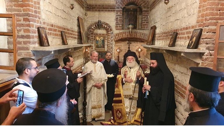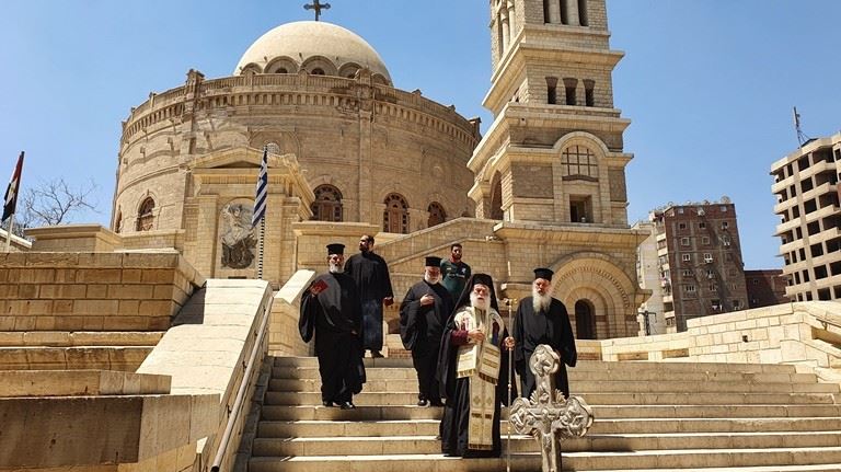ترأس قداسة البابا ثيودروس الثاني، بابا وبطريرك الإسكندرية وسائر افريقيا للروم الارثوذكس، اليوم الخميس، القداس الإلهي من كنيسة القديس جيورجيوس الصغيرة الواقعة أسفل دير مارجرجس الأثرية للروم الأرثوذكس بمصر القديمة.