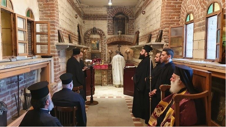 وشارك في صلاة القداس الإلهي مع قداستة، كل من: المتروبوليت نيقوديموس مطران مصر الجديدة وحلوان (ممفيس)، المتروبوليت نيفون مطران بور سعيد (بيلوسِيُو)، الأسقف جرمانوس رئيس دير القديس سابا بإسكندرية والأرشمندريت دمسكينوس رئيس الدير.