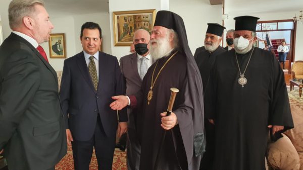 في خطاب غبطته أشار إلى دعم البطريركية في قضايا الدفاع عن حقوق الإنسان. وأعرب عن أمله في تطبيق القانون الدولي فيما يخص القضية القبرصية، وأعرب عن رغبته في التوصل إلى حل سريع لمشكلة الاحتلال غير القانوني لأراضي قبرص التي طال أمدها.