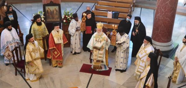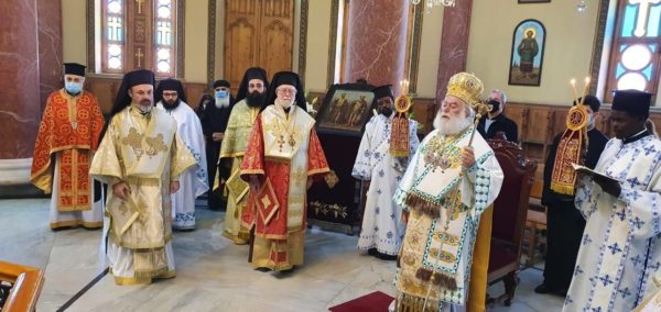 بمشاركة المتروبوليت نقولا مطران إرموبوليس (طنطا)، والمتروبوليت نيقوديموس مطران ممفيس (مصر الجديدة) والوكيل البطريركي في القاهرة، والمتروبوليت ناركيسوس مطران نفكراتوس والوكيل البطريركي في الإسكندرية، والأسقف جرمانوس رئيس دير القديس سابا البطريركي في الإسكندرية، والأرشمندريت الأب دامسكينوس الأزراعي رئيس الدير.