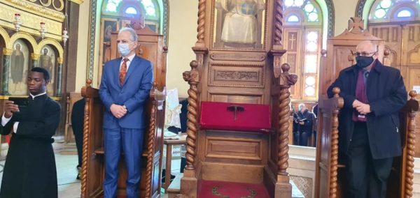 وحضر المهندس/ كلود نقاش المجلس الطائفي العام للروم الأرثوذكس الناطقين بالعربية، والمهندس/ سالم قسيس رئيس مجلس كنيسة رؤساء الملائكة في القاهرة، والسيد/ خريستو كافاليس رئيس الجمعية اليونانية في القاهرة، والسيدة/ كريسانثي سكوفريدو الأمين العام للجمعية اليونانية في القاهرة.