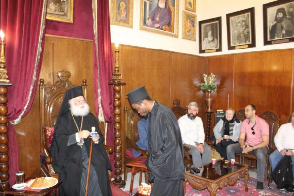 بعد القداس الإلهي استقبل البابا ثيودروس الحضور في قاعة العرش البطريركي للدير المجاورة للكنيسة والذين أعربوا لغبطته عن سعادتهم بلقاء غبطته.