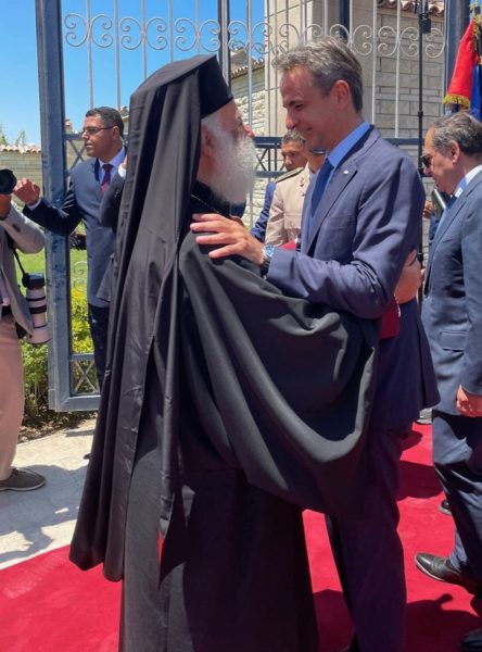 اليوم 3 أغسطس 2023 خلال زيار رئيس وزراء اليونان السيد/ كيرياكوس ميتسوتاكيس الرسمية لمصر التقي بصاحب الغبطة البابا ثيودروس الثاتي، بابا وبطريرك الإسكندرية وسائر أفريقيا للروم الأرثوذكس، في النصب التذكاري لليونانيين الذين سقطوا خلال المعركة التاريخية عام 1942م بمنطقة العلمين شمال مصر.