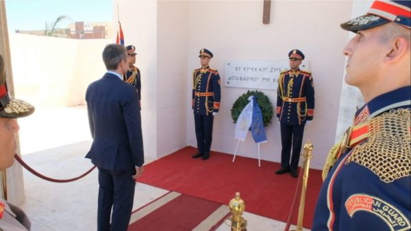 وقد قام السيد رئيس الوزراء بوضع إكليل من الزهور على النصب التذكاري لليونانيين الذين سقطوا في المعركة. بعد ذلك تلا غبطته صلاة قصيرة من أجل راحة نفوسهم.