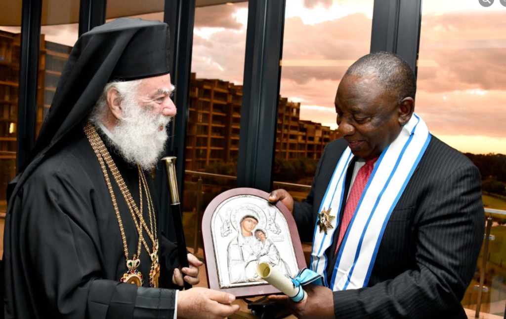 وأشار الرئيس Cyril Ramaphosa، إلى صداقة جنوب إفريقيا مع جميع الدول الأفريقية بما فيها مصر وكذلك مع اليونان وقبرص، وكذلك إلى العلاقات الطيبة مع المجتمعات الأرثوذكسية.