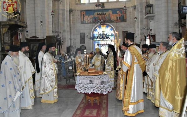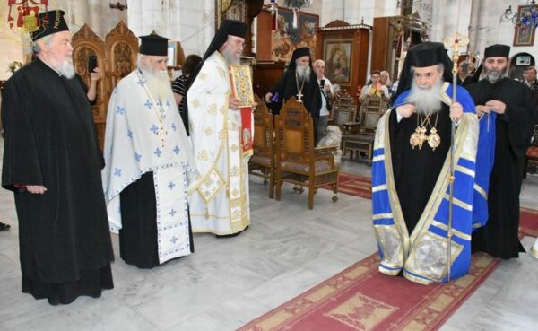 شارك غبطته في القداس الاحتفالي السادة المطارنة , كيريوس كيرياكوس متروبوليت الناصرة, كيريوس اريسترخوس سكرتير البطريركية العام رئيس اساقفة قسطنطيني, كيريوس يواكيم متروبوليت الينوبوليس, رؤساء الأديرة وآباء من أخوية القبر المقدس, وكهنة الرعية الاورثوذكسية في مدينة نابلس والقضاء, ورُتلت الصلاة باللغتين العربية واليونانية في اجواء احتفالية .