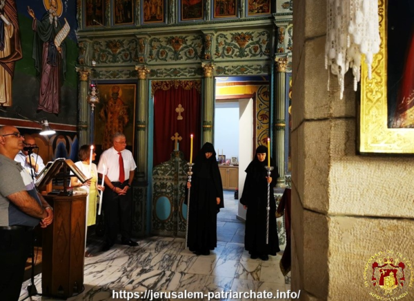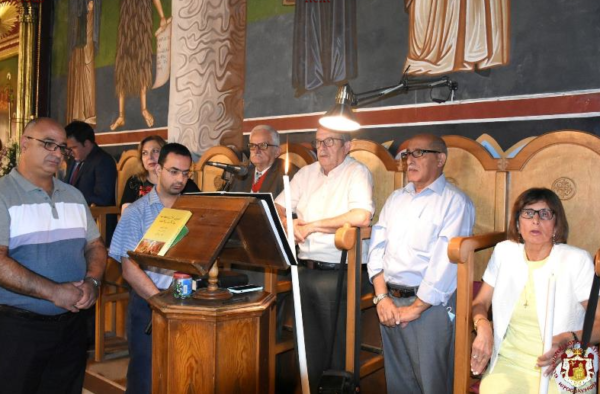 ترأس خدمة القداس الالهي غبطة بطريرك المدينة المقدسة اورشليم كيريوس كيريوس ثيوفيلوس الثالث يشاركة في الخدمة متروبوليت كابيتاليس كيريوس ايسخيوس, رئيس أساقفة قسطنطيني كيريوس اريسترخوس, رئيس أساقفة بيلا كيريوس فيلومينوس, متروبوليت إلينوبوليس كيريوس يواكيم , قدس الأرشمندريت بارثلماوس, قدس الأرشمندريت مكاريوس, قدس الأرشمندريت أيسيذوروس, المتقدم في الشمامسة الأب ماركوس الشماس المتوحد الأب إفلوغيوس, الأب خرالامبوس بنور والأب جوارجيوس برامكي كهنة كتدرائية يعقوب اخو الرب وقدس الأب يوسف الهودلي. ورتل قدس الأرشمندرينت إفسيفيوس الصلاة باللغة اليونانية وخورس كتدرائية يعقوب اخو الرب التراتيل باللغة العربية بقيادة السيد ريمون قمر. وحضر الخدمة القنصل اليوناني العام السيد إفانجيلوس فليوراس وعدد من المصلين.