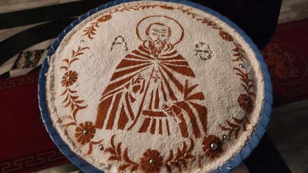 بعد خدمة القداس الإلهي أعد الرئيس الروحي للدير الأرشمندريت إيروثيوس مادبة طعام متواضعة.