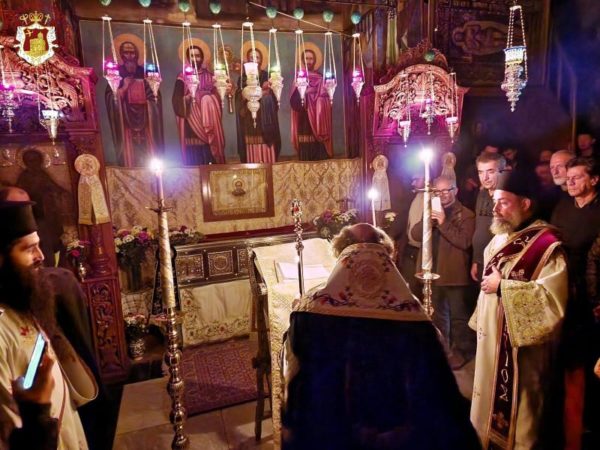 ترأس غبطة البطريرك كيريوس كيريوس ثيوفيلوس الثالث خدمة صلاة السهرانية والقداس الالهي في هذا الدير التاريخي, يشاركة، سيادة رئيس أساقفة قسطنطيني أريسترخوس، سيادة متروبوليت إيلينوبوليس يواكيم، آباء من أخوية القبر المقدس وكهنة الرعية الأورثوذكسية والرئيس الروحي للدير قدس الأرشمندريت إفذوكيموس مع الآباء الرهبان. ورُتلت الصلوات باللغيتين العربية واليونانية من قبل رئيس أساقفة مادبا أريستوفولوس والشماس المتوحد الأب سيميون وخورس بيت لحم. وشارك عدد من أبناء الرعية الأورثوذكسية من بيت لحم, بيت جالا وبيت ساحور والمنطقة.