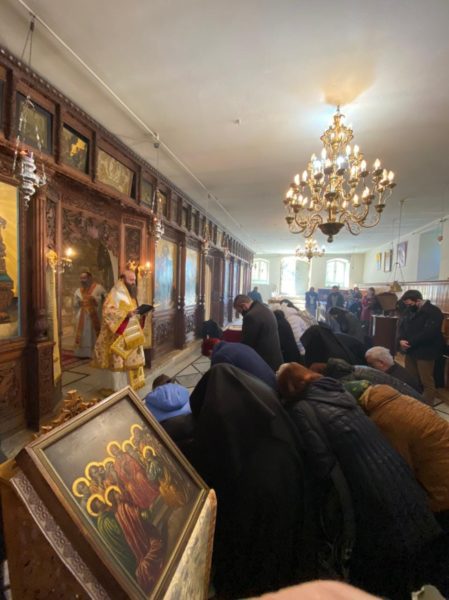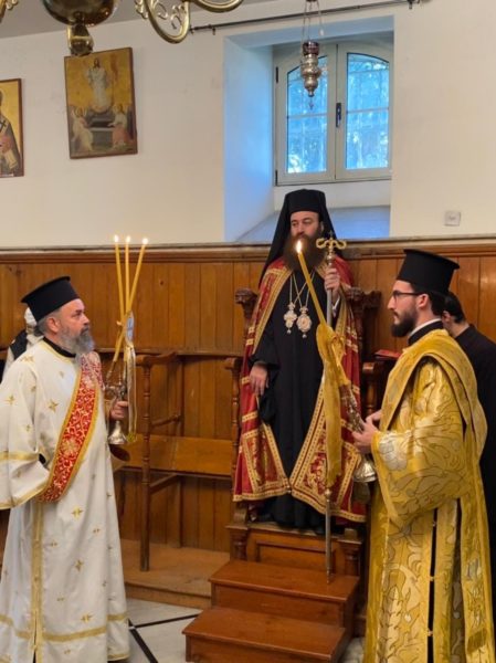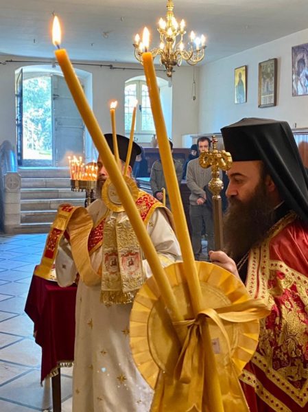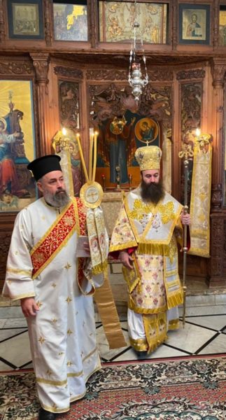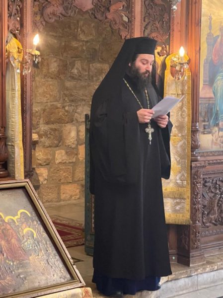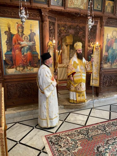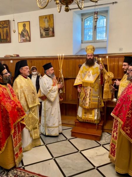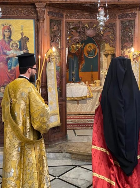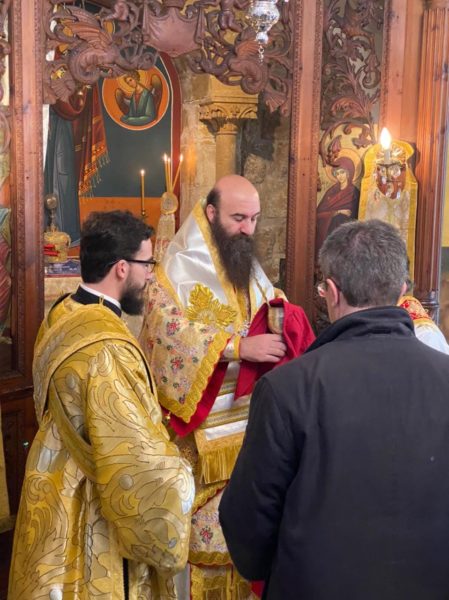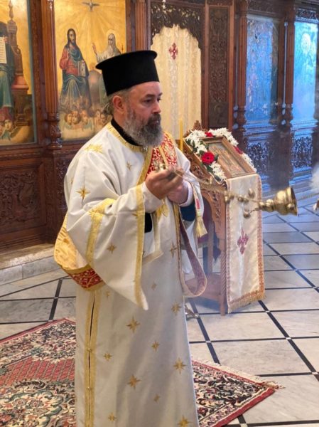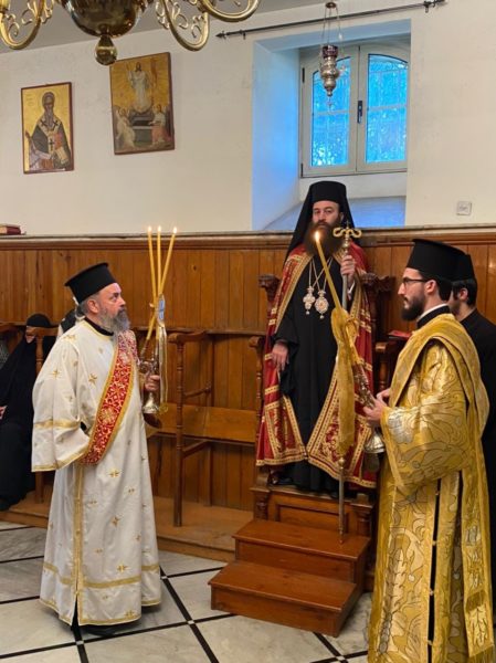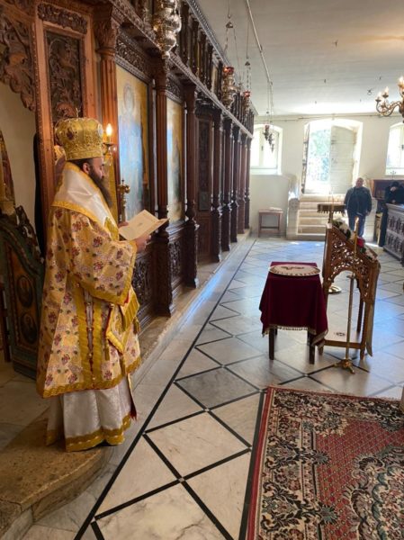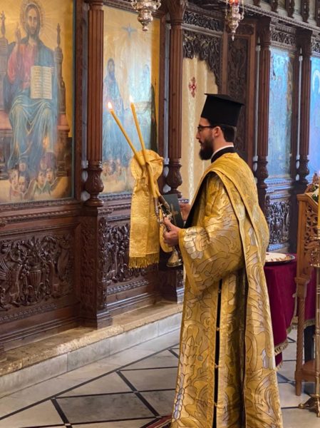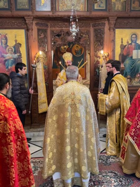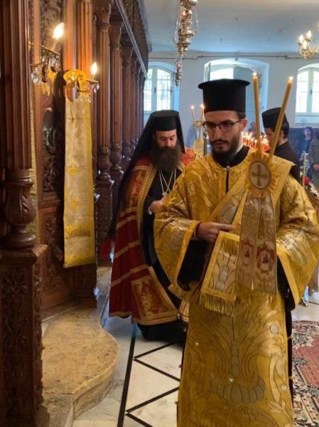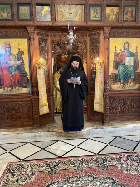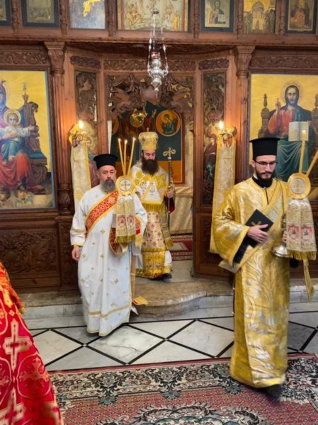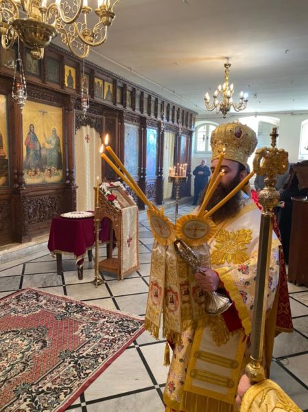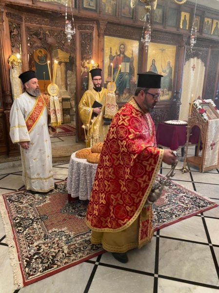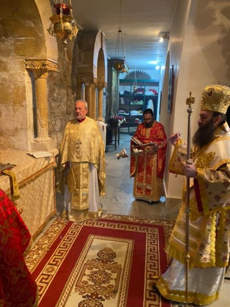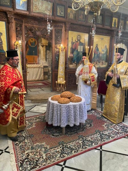 في هذه المناسبة اقيمت صلاة الغروب وخدمة القداس الالهي في كنيسة الثالوث القدوس في المدرسة البطريركية “صهيون المقدسة”, وترأس الخدمة رئيس المدرسة سيادة رئيس اساقفة ايرابوليس اسيذوروس يشاركه في الخدمة الأرشمندريت كلافذيوس, الأب نيكتاريوس, الأب فرح, المتقدم في الشمامسة الأب ماركوس, والشماس الأب بتريكيوس. شارك في الترتيل الشماس الأب سيميون سكرتير المجمع المقدس, السيد باسيليوس غتسوبولوس وطلاب المدرسة البطريركية صهيون, وحضر القداس معلمي وطلاب المدرسة والقنصل اليوناني العام السيد إفانجيلوس فليوراس.