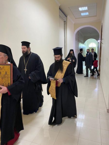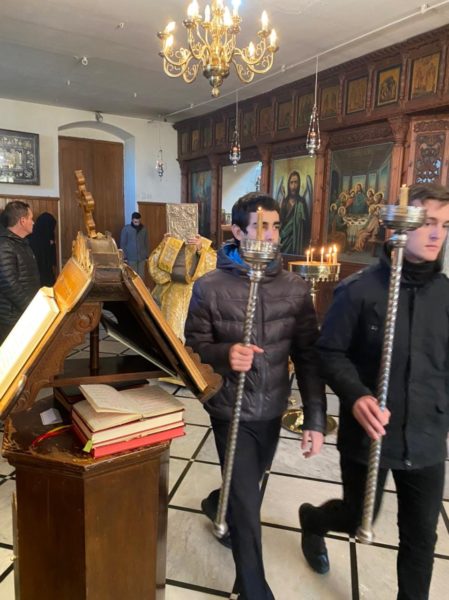 بعد خدمة القداس استضاف مدير المدرسة الأرشمندريت ماتيوس المعلمين والطلاب في قاعة المدرسة لتقديم الضيافة.