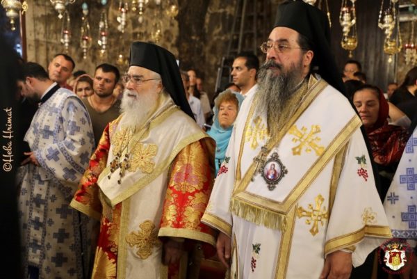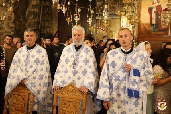 أقيمت خدمة القداس الإلهي الإحتفالي في مزار قبر السيدة العذراء المقدس في دير الجثسمانية حيث ترأس الخدمة صاحب الغبطة بطريرك المدينة المقدسة أورشليم كيريوس كيريوس ثيوفيلوس الثالث, يشاركه أصحاب السيادة متروبوليت كابيتولياذا كيريوس إيسيخيوس, متروبوليت البصرى كيريوس ثيموثاوس, رئيس أساقفة قسطنطيني كيريوس أريسترخوس, رئيس أساقفة قطر كيريوس مكاريوس, آباء أخوية القبر المقدس, وآباء من كنيسة روسيا ورومانيا, بحضور القنصل العام لليونان السيد إيفانجيلوس فليوراس وعدد كبير من المصلين من المدينة المقدسة وجميع مناطق البلاد, ومن اليونان, روسيا, قبرص ورومانيا.