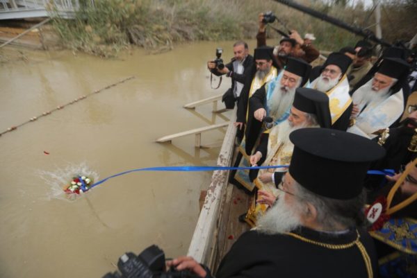 وفي الختام أطلق الحمامَ الأبيضَ رمزَاً للرّوحِ القدسِ الذي رفَّ فوق مياه نهر الأردن عندَ اعتمادِ السّيّد المسيح، وتوجه مع المطارنة والكهنة لضفة النهر مباركاً كالعادة مياه نهر الأردن بالصليب المقدس.