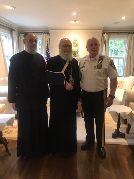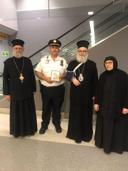 وكان في استقباله في المطار المطران سابا اسبر متروبوليت نيويورك وسائر أمريكا الشمالية والكهنة وبعض من أبناء الأبرشية. ولدى وصوله إلى دار المطرانية أقيمت صلاة الشكر.