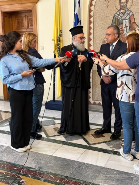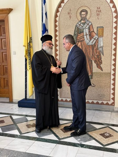 عند وصوله إلى مقرّ رئاسة الأساقفة، كان في استقباله وزير الصحة القبرصيّ السيّد ميخاليس جحي بنديلا الذي رافقه في الزيارة لرئيس الاساقفة.