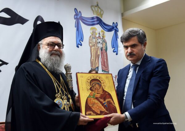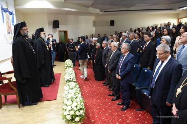 بعد ذلك قدّم رئيس الجامعة إلى البطريرك يوحنا ايقونة، كما قدم عميد الكلية الياس خليل درعًا تقديرية إلى المتروبوليت باسيليوس (منصور)، ودرعًا آخر إلى رئيس الجامعة الدكتور الياس الوراق. وتبادل الجميع الصور التذكارية.