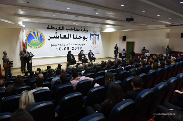 البطريرك يوحنا العاشر يتفقد جامعة البلمند – كلية عصام فارس للتكنولوجيا في بينو ويلتقي بالشبيبة في ساحة كنيسة السيدة- التليل.