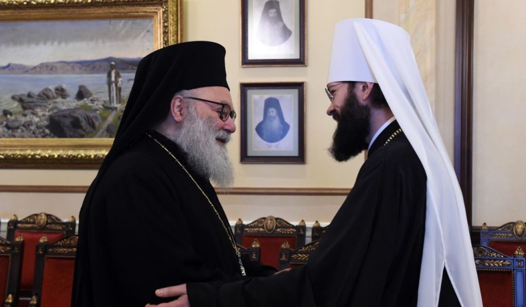 البطريرك يوحنا العاشر يستقبل ميتروبوليت فولاكولامسك أنطونيوس، رئيس قسم العلاقات الخارجيّة الكنسية في بطريركية موسكو وسائر روسيا في الدار البطريركية في دمشق
