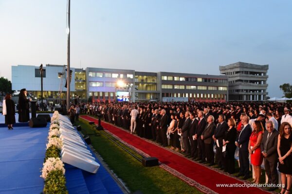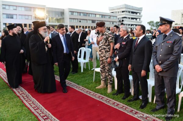 بعد النشيد الوطني، رحبت مقدمة الاحتفال الدكتورة مارلين كنعان، بالحضور، وطلبت من البطريرك يوحنا العاشر تلاوة الدعاء.