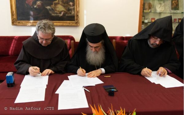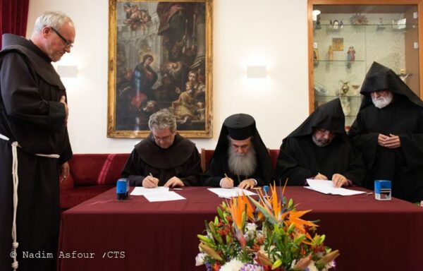 التوقيع على إتفاقية إستكمال إعمال الترميم في القبر المقدس والأرضية