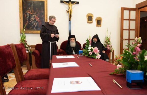 عقد لقاء مساء يوم الإثنين الموافق 27 أيار 2019 في دير أخوية الفرنسيسكان بين الكنائس الثلاث التي لها حقوق في كنيسة القيامة لتوقيع أتفاقية الأستمرار في أعمال ترميم القبر المقدس والأرضية المحيطة به. وهذه هي المرحلة الثانية من أعمال الترميم التي إنتهت عام 2017 وإستمرت عامين وتم خلالها ترميم وإصلاح بناء القبر المقدس الداخلي والخارجي من قبل فريق من الباحثين من جامعة البوليتخنيون في أثينا, وتمت الاعمال بمبادرة وإشراف البطريركية الأورشليمية بمشاركة أخوية الفرنسيسكان والبطريركية الأرمنية في القدس.