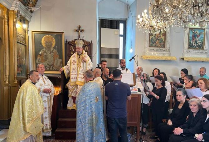 في نهاية القداس، جرت صلاة التريصاجيون لراحة نفس كاهن الرعيّة قدس الاب الياس المر بمشاركة عدد من الآباء الكهنة.