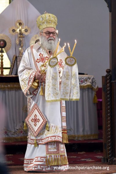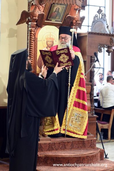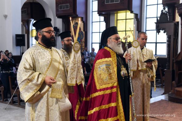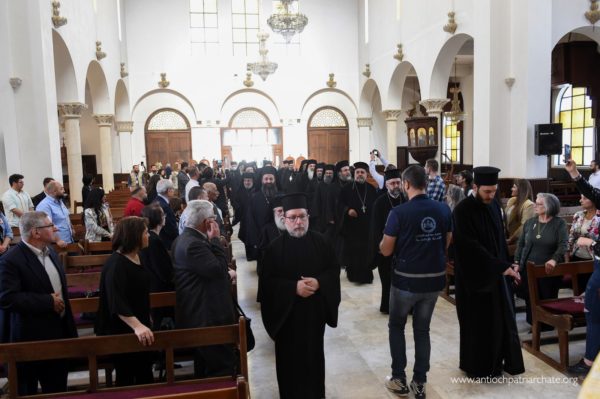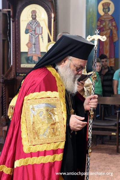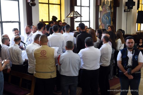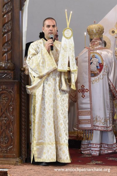 شاركه في خدمة الصلاة كل من أصحاب السيادة راعي الأبرشية نقولا، سابا (أبرشية حوران وجبل العرب) باسيليوس (أبرشية عكار وتوابعها)، غطاس (أبرشية بغداد والكويت وتوابعهما)، اثناسيوس (أبرشية اللاذقية وتوابعها)، افرام (أبرشية حلب والإسكندرون وتوابعهما)، والأساقفة موسى الخوري، ديمتري شربك، غريغوريوس الخوري (الوكيل البطريركي)، أرسانيوس دحدل، موسى الخصي ولفيف من الآباء الكهنة والشمامسة بحضور جمهور كبير من المؤمنين ضاقت بهم أروقة الكنيسة.