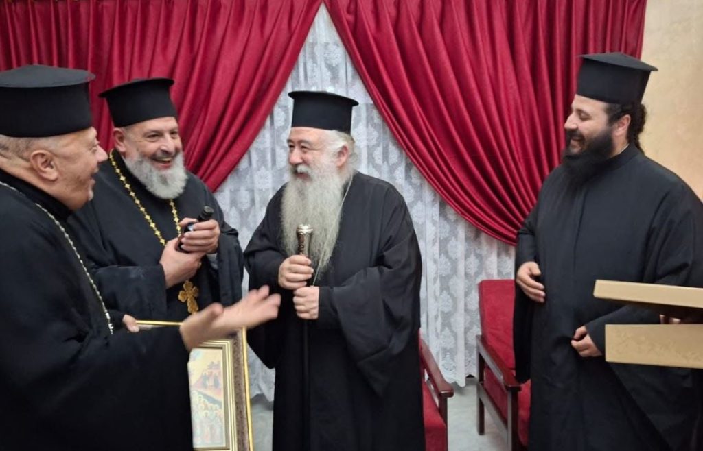 مطران الأردن للروم الأرثوذكس المدبر البطريركي للروم الكاثوليك قدس الأرشمندريت بول نزها في مطرانية الكاثوليك / أم السماق مساء أمس الخميس 5-12-2024 لتهنئته بتعيينه مدبراً لكنيسة الروم الكاثوليك في الأردن متمنياً له الصحة والعافية والعمل المثمر للكنيسة والوطن.