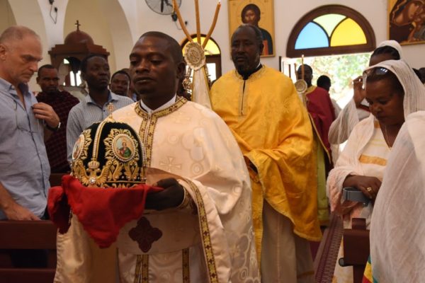 وحضر القداس الإلهي المؤمنون المحليون ومن قبيلة الماساي ويونانيون وأثيوبيون.
