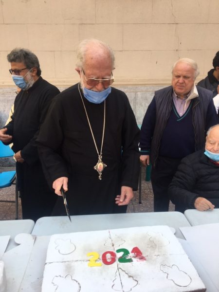 بعد القداس الإلهي قام نيافته في ساحة الكنيسة بتبريك كعكة الـ Vasilopita، باليونانية Βασιλόπιτα وتقطيعها وتوزيعها على المصلين.