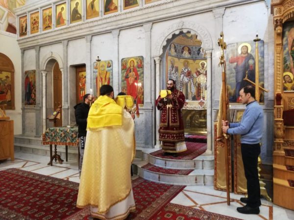 بعد العظة توجه المطران (غندور)بالشكر العميق للمتروبوليت (الصوري)، على بركة إقامة الذبيحة الإلهية.