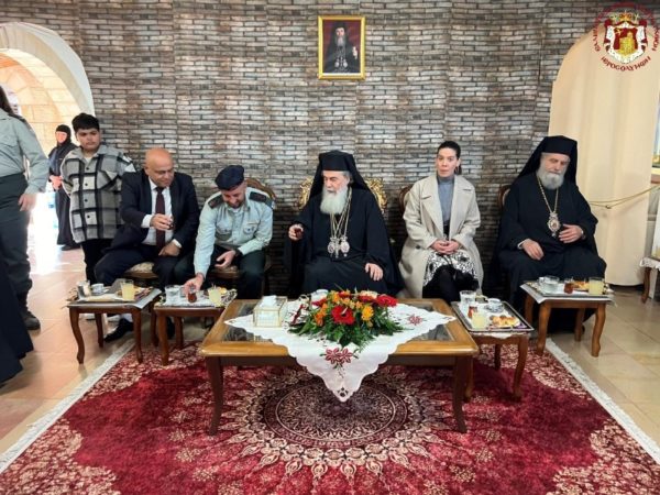 بعد ذلك توجه الموكب جنوبيّ المدينة المقدسة اورشليم الى دير النبي ايليا الواقع بين القدس وبيت لحم, وبعد زيارة الدير والضيافة من قِبل مشرف الدير الراهب أخيليوس, رافق الوفد البطريركي وفد من الإدارة المدنية وممثل وزارة الخارجية الاسرائيلية السيد سيزار مرجية حتى الوصول الى قبر راحيل عند مداخل مدينة بيت لحم, هناك تسلم الوفد البطريركي وفد من السلطة الفلسطينية التي بدورها رافقت الوفد البطريركي حتى ساحة بلدية بيت لحم, حيث كان في إستقبال صاحب الغبطة الوكيل البطريركي في بيت لحم سيادة متروبوليت ذيقيصارية كيريوس فينيذكتوس.