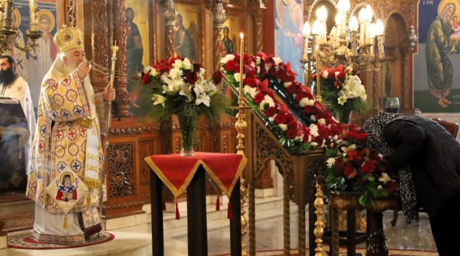 في نهاية الخدمةِ تقدّم سيادَتُه باسمِ الرّعيّةِ الأرثوذكسيّةِ والإكليروس في الأردن من صاحبِ الغبطةِ كيريوس كيريوس ثيوفيلوس الثّالث بطريركِ المدينةِ المقدّسةِ بالتّهنئةِ والمُبارَكة بمناسبةِ تبوّئِه عرشَ بطريركيّة القدس أمِّ الكنائس خليفةً للقدّيسِ يعقوب أخي الرّبِّ متمنّين له سنين عديدةً بالصّحّة والعافية في خدمةِ كنيسة المسيح ورعيّتها ، ثم عايدَ الأبَ نكتاريوس وأخويّةَ ديرِ القدّيس نكتاريوس والرّعيّةَ الأرثوذكسيّة بهذه المناسبةِ المبارَكة .