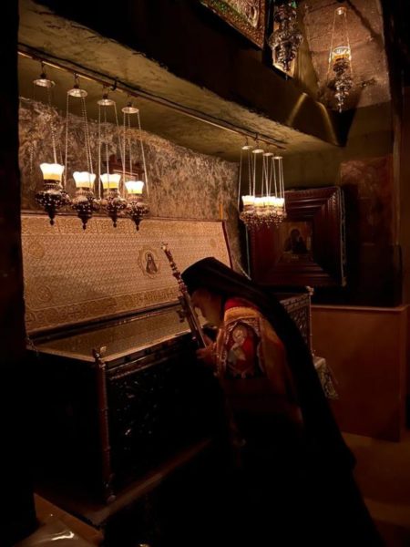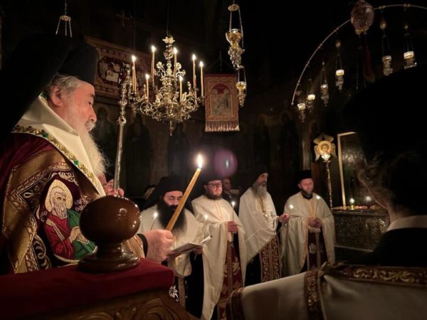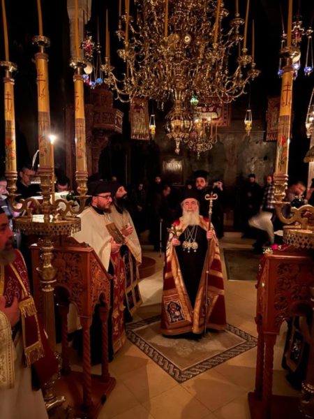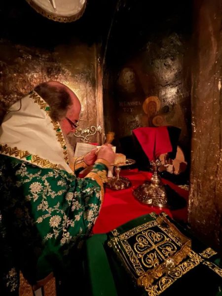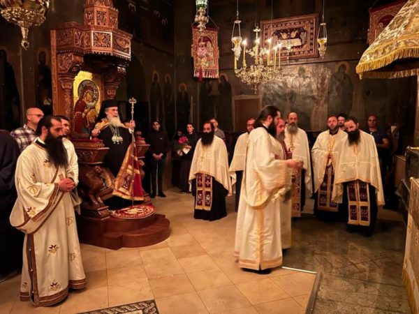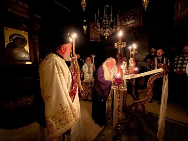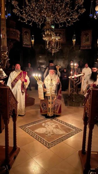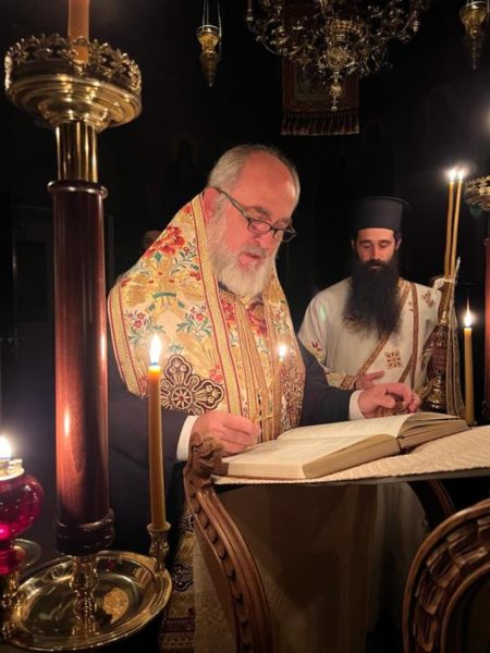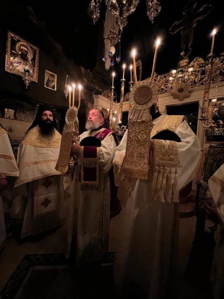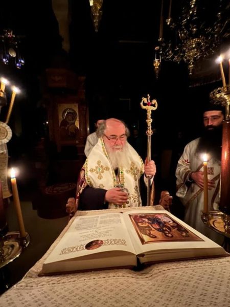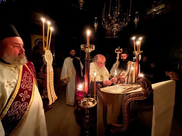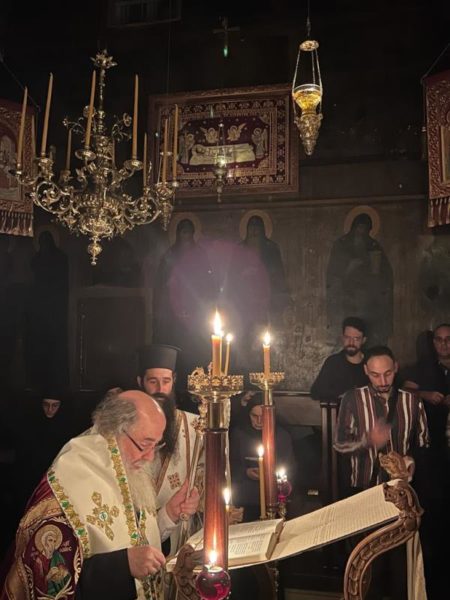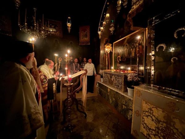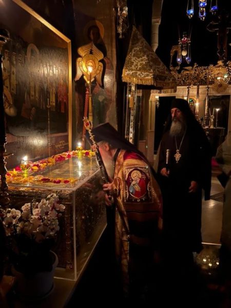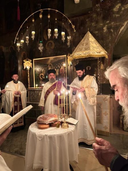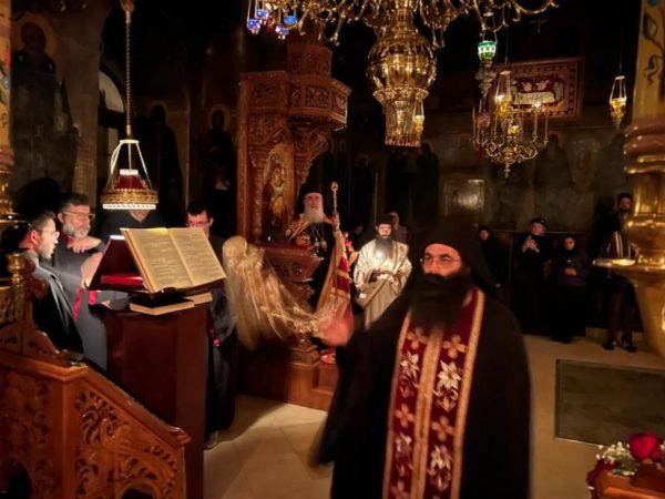 غبطة البطريرك كيريوس كيريوس ثيوفيلوس الثالث ترأس خدمة صلاة الغروب وخدمة القداس الالهي في الدير يشاركه سيادة رئيس أساقفة قسطنطيني كيريوس أريسترخوس, سيادة متروبوليت إيلينوبوليس كيريوس يواكيم, رهبان الدير وآباء من أخوية القبر المقدس. وحضر ايضاً عدد من المصلين.