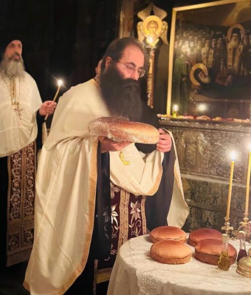 بعد خدمة القداس في الليل أعد الرئيس الروحي الأرشمندريت قسطنطين ورهبان الدير مادبة طعام على شرف غبطة البطريرك والآباء والزوار.