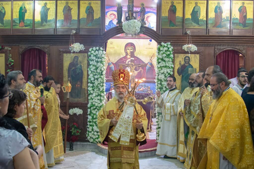 وفي بداية عظته وجّه صاحب السيادة معايدة قلبية للرعية بمناسبة عيد شفيعها خاصّاً بها كاهن الرعية الأب أثناسيوس مخول، مثنياً على عمله الرعائي ونشاطه، وغيرته على خدمة الرعية وتلبية كافة احتياجاتها.