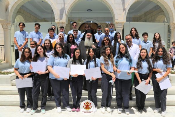 كرم صاحب السيادة المطران خريستوفوروس عطالله مجموعة من الطلاب المتميزين من مدرسة البطريرك ذيوذورورس الأول الذين حصلوا على شهادات وإنجازات بعد مشاركتهم بمسابقات ومبادرات وأنشطة مدرسية على الصعيد المحلي والدولي في دار المطرانية بعمان، بحضور مديرة المدرسة الدكتورة رائدة قصار والمعلمين رعد القسوس وأسماء عبد العزيز وأسيل النعمات.