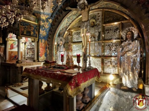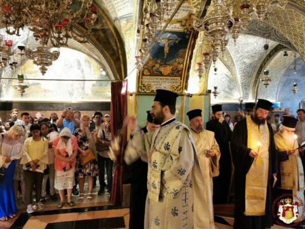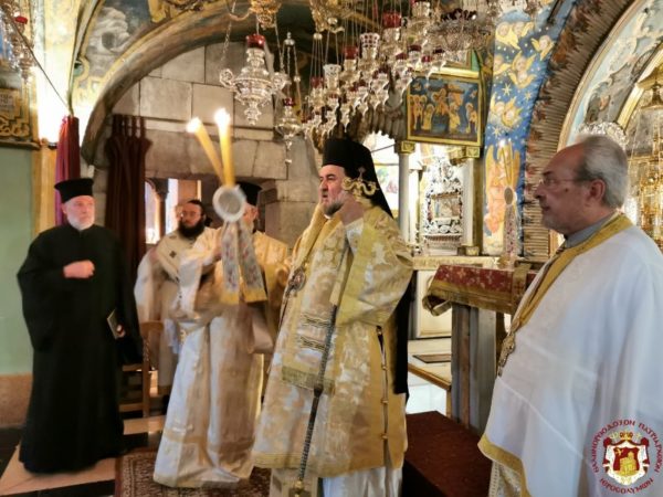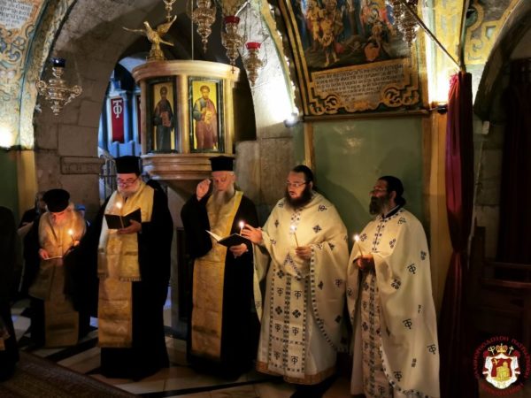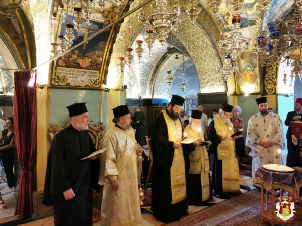 تقدم صلاة ذكرانية الأريعين صاحب الغبطة كيريوس كيريوس ثيوفيلوس الثالث يشاركه آباء أخوية القبرالمقدس من أساقفة وآباء متوحدين وشمامسة بحضور عدد من المصلين.