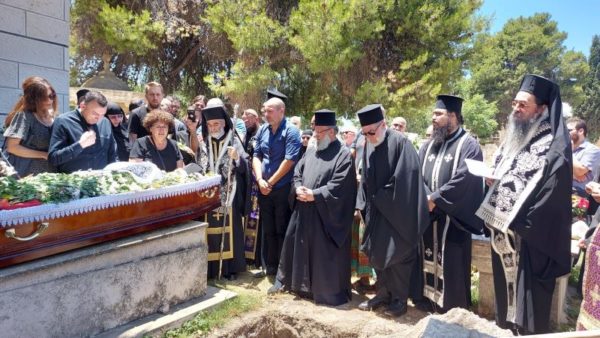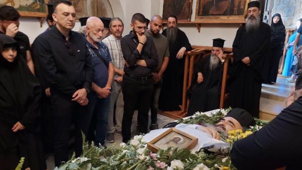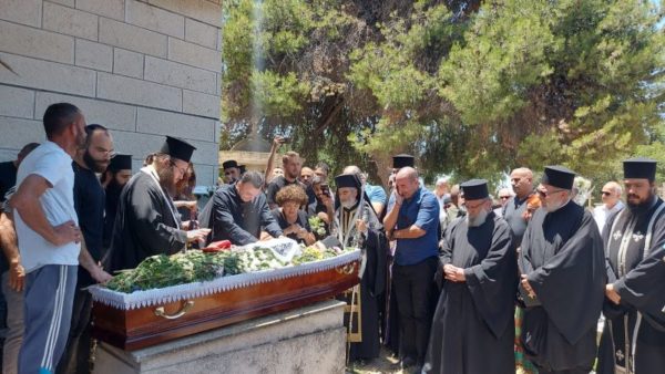 “الرحيل المفاجئ والقاسي إلى الرب لأخينا الحبيب الأرشمندريت فيلوثيوس الوكيل البطريركي في مطرانية بتوليمائيس – عكا، جمعنا اليوم معاً في جنازته. نقف أمام جثمانه بدموع وبكاء ، تمامًا كما وقف الرب باكيًا أمام قبر صديقه الميت أليعازر بعد أربعة أيام من موته والذي أقامه من بين الأموات. يخيّم الخوف على نفوسنا أمام سر الموت، ولكن لا يأس أبدًا لأن ربنا كان خائفًا قبل موته على الصليب وتوسل إلى الآب ، “إذا أردت أن تعبر عني هذه الكأس”. الخوف قبل الموت هو أحد المشاعر البشرية التي لا يمكن التخلص منها، والتي تنازل عنها الرب وتجسد من أجل خلاصنا. نقف أمام جثمان أخينا الحبيب ونحن “حزينون على الفراق” ونسمع كلمات كاتب الترانيم ، “أنا أحزن وأبكي عندما أفكر في الموت”.
