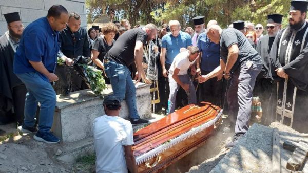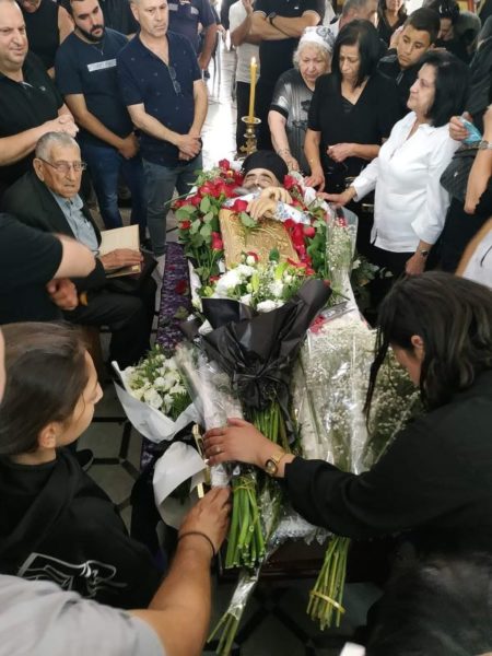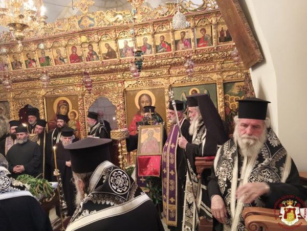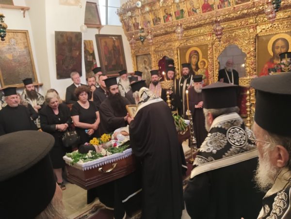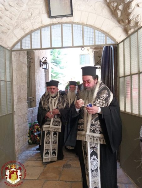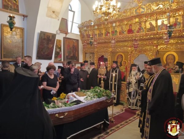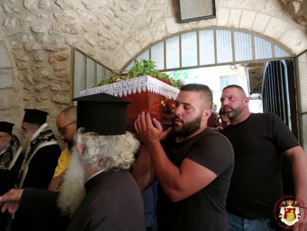 ترأس خدمة الجناز في كنيسة القديسة ثقلا في الدير المركزي في البطريركية غبطة البطريرك كيريوس كيريوس ثيوفيلوس الثالث بمشاركة أساقفة وآباء أخوية القبر المقدس وآباء مطرانية عكا, بحضور القنصل اليوناني العام السيد فليوراس ومؤمنين من القدس ومن منطقة عكا.