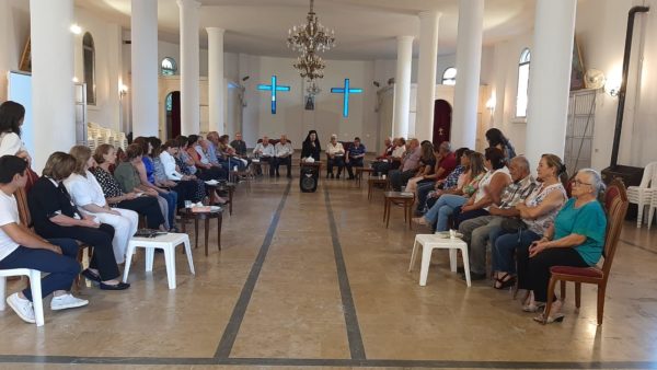 وبعدها كان ضيافة في صالون الرعية وحديث روحي وشهادات حياة.
