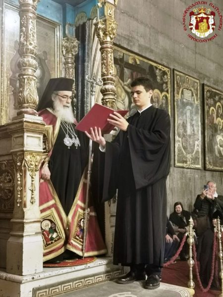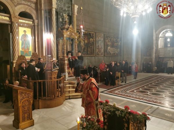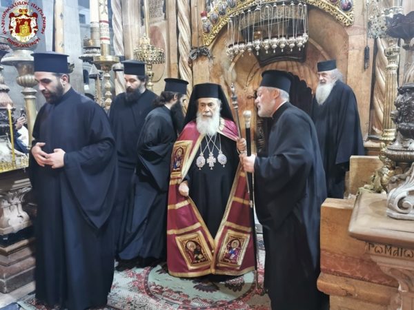 غبطة البطريرك كيريوس كيريوس ثيوفليوس الثالث الذي ترأس الخدمة قرأ الدور الأول من المديح (الابيات الستة الاولى), تلاه سيادة رئيس أساقفةقسطنطيني كيريوس أريسترخوس حيث قرأ الدور الثاني, رئيس أساقفة إيرابوليس إيسيذوروس الدور الثالث, وأخيراً قدس الأرشمندريت ماتيوس الذي قرأ بدوره الدور الأخير. حضر الخدمة القنصل اليوناني العام وآباء أخوية القبر المقدس وأبناء الرعية الأورثوذكسية في القدس.