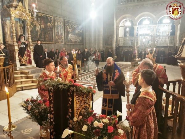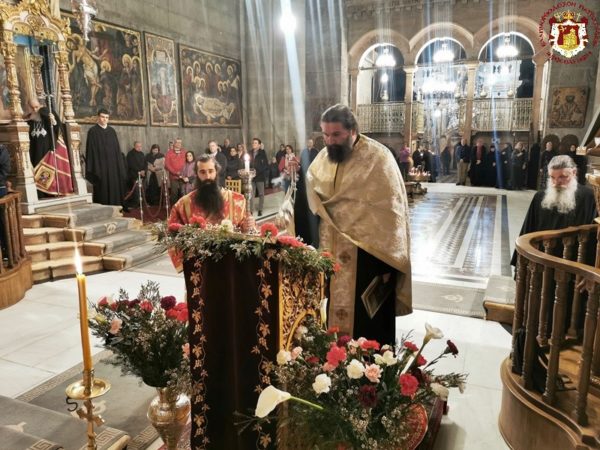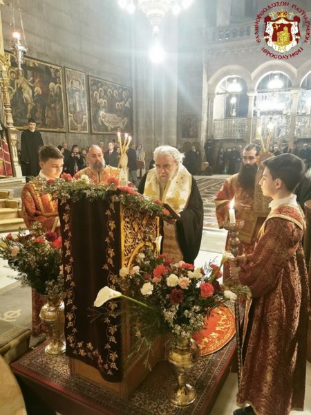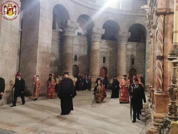أقيمت مساء يوم الجمعة الموافق 31 آذار 2022 (يعادله 18 آذار حسب التقويم الشرقي) في كنيسة القيامة المقدسة خدمة المديح الذي لا يجلس فيه لوالدة الإله الفائق قدسها.