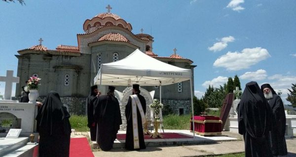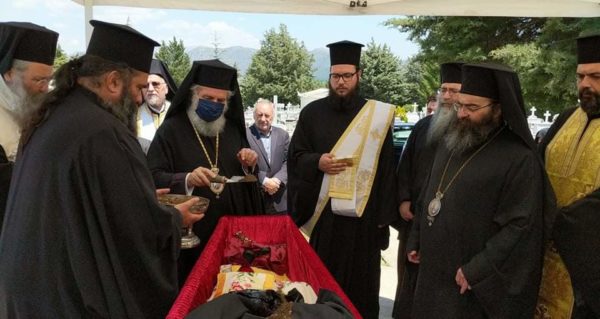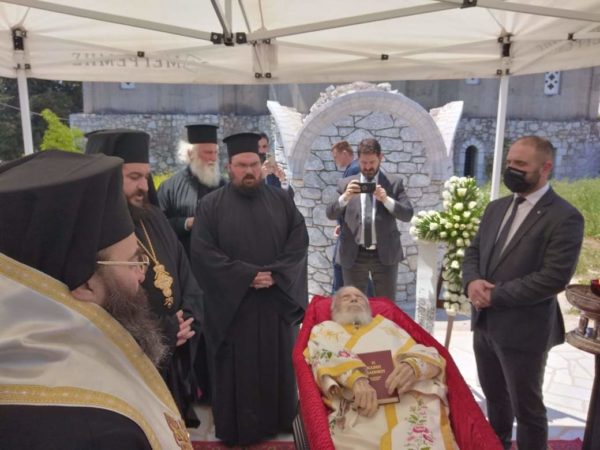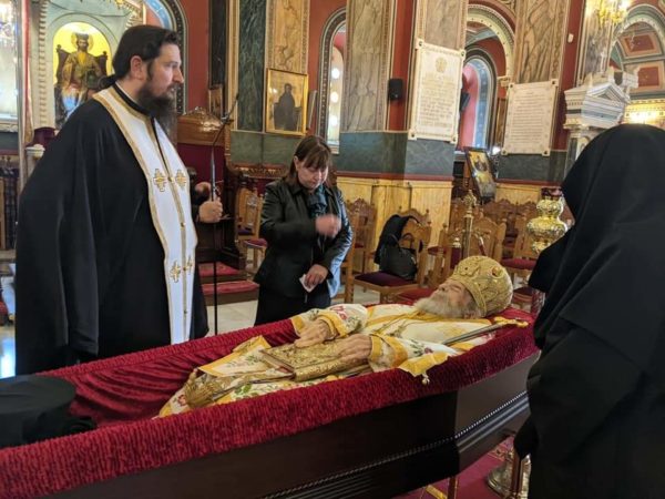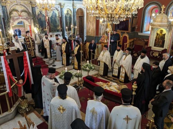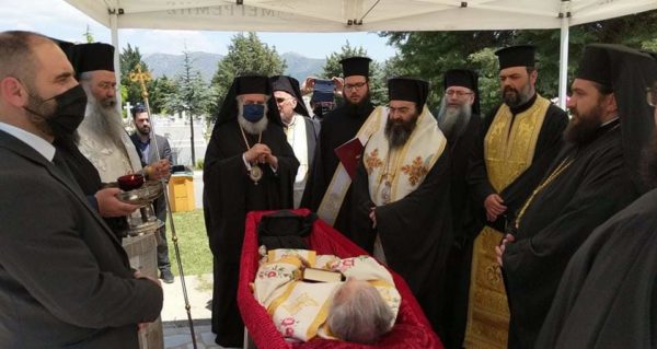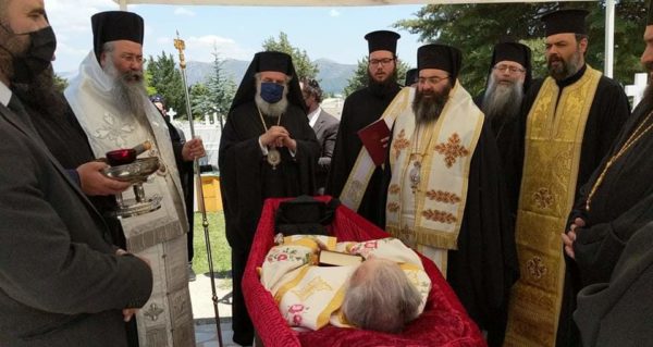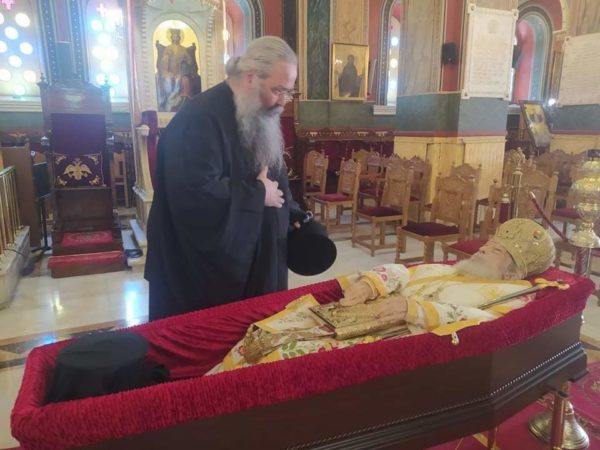 إكراماً للمثلث الرحمات حضر سيادة أسقف تيغياس كيريوس ثيوكليتوس, وسيادة متروبوليت كيتروس كيريوس جيورجيوس وعدد كبير من كهنة وأبناء رعية مطرانية مادينيا. دفن جثمان المثلث الرحمات في مقبرة تريبوليس.