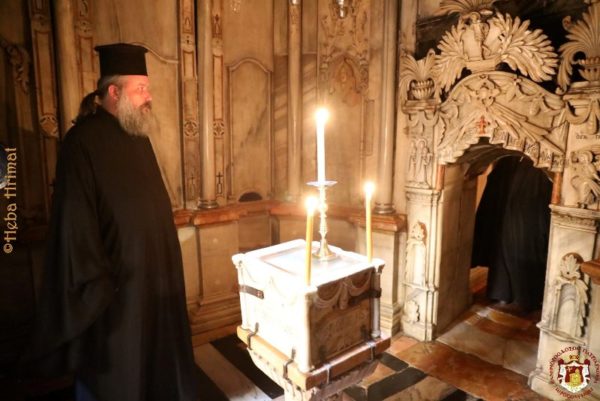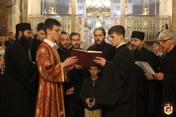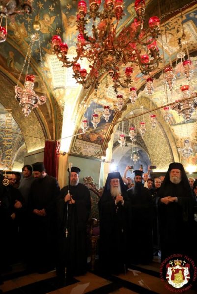 ترأس الخدمة غبطة البطريرك كيريوس كيريوس ثيوفيلوس الثالث يشاركه آباء أخوية القبر المقسد من كهنة متوحدين وشمامسة . وحضر صلاة الغروب العديد من الحجاج.