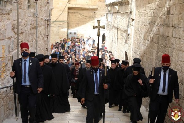 بعد ظهر يوم الجمعة العظيمة الموافق 22 نيسان 2022 (9 نيسان شرقي)، أقيمت خدمة صلاة الغروب ليوم الجمعة العظيمة من أسبوع الآلام في كنيسة القيامة، تذكاراً لإنزال جسد الرب الطاهر عن الصليب ووضعه في قبر قريب من مكان الصلب.