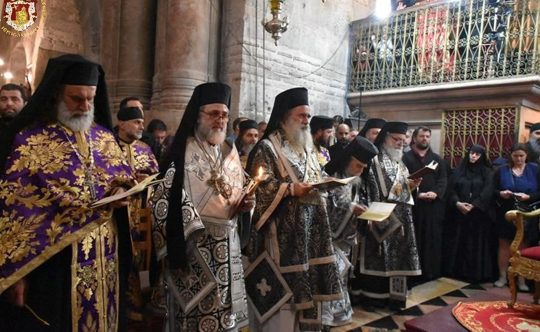 اقيمت في كنيسة القيامة يوم الجمعه العظيمة الموافق 26نيسان 2019 خدمة صلوات جناز المسيح تذكاراً لدفن ربنا ومخلصنا يسوع المسيح بالجسد بعد موته على الصليب.