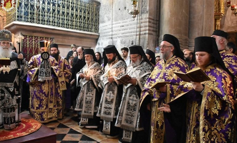 اقيمت في كنيسة القيامة يوم الجمعه العظيمة الموافق 26نيسان 2019 خدمة صلوات جناز المسيح تذكاراً لدفن ربنا ومخلصنا يسوع المسيح بالجسد بعد موته على الصليب.